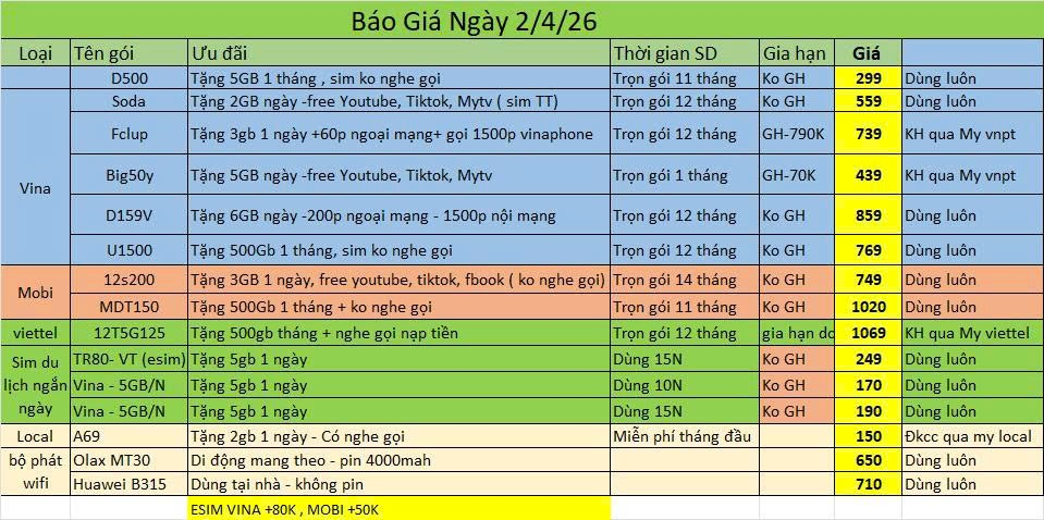 Tất cả SIM